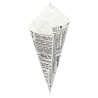 Kegel van vetvrij papier met een Times-design dat de pagina's van een krant simuleert. Ontdek de meest functionele, professionele en ecologische manier om je gefrituurde eten te serveren.